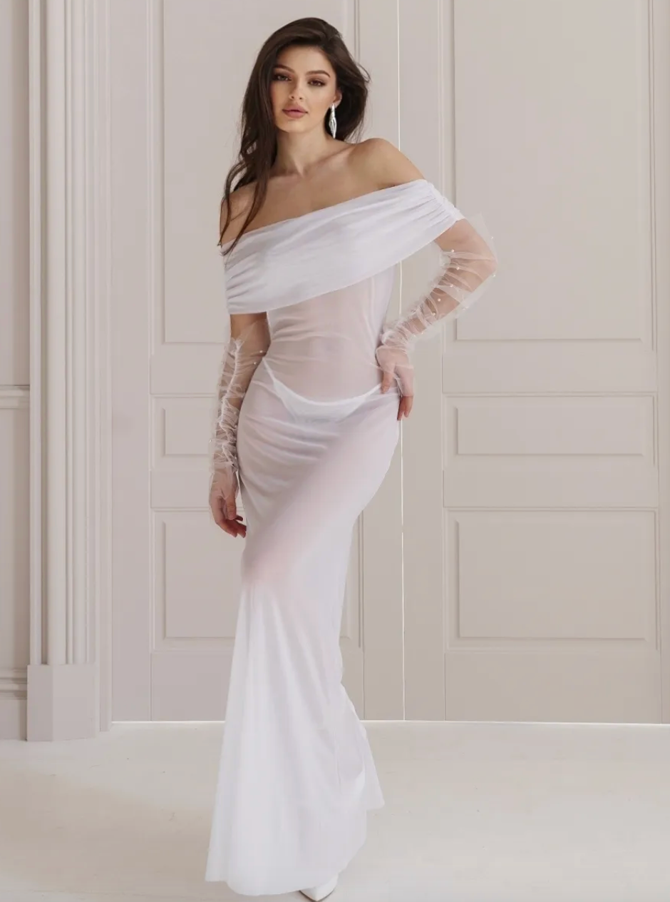 Платье из сетки, полупрозрачное по длине, скрывает грудь за воздушными слоями сетки, можно надеть как самостоятельный элемент гардероба, можно поверх нижнего платья.